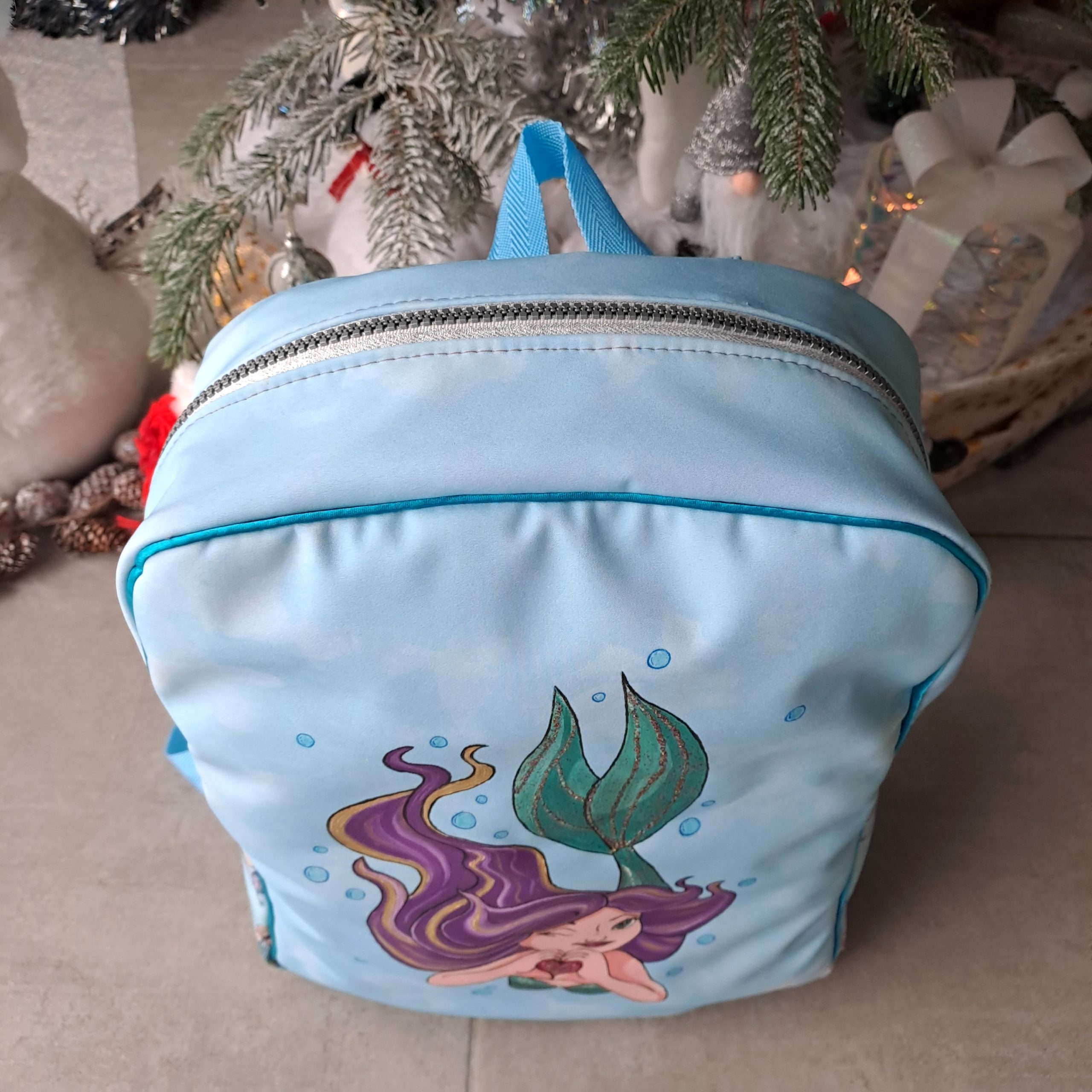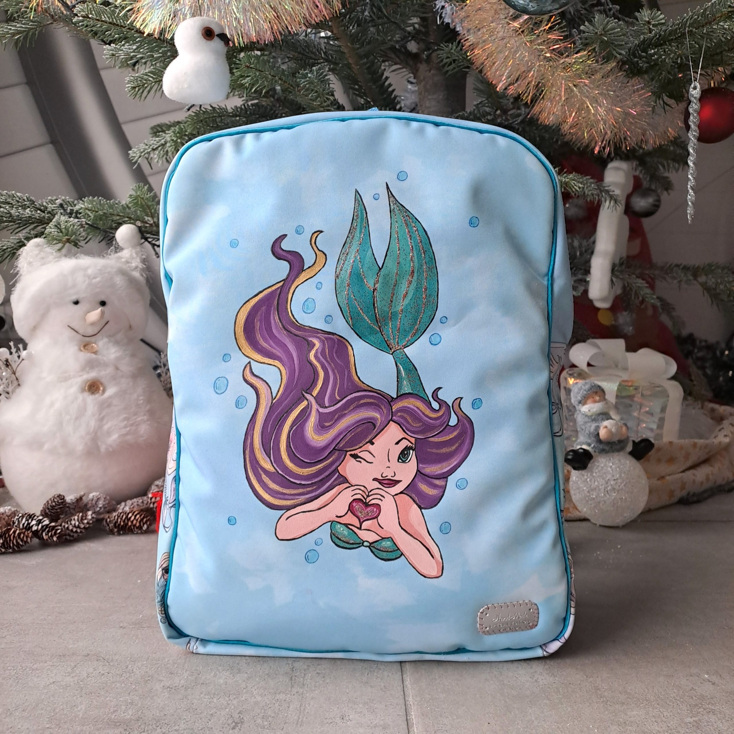 Cette sirène est peinte à la main à la peinture textile — aucun transfert, aucune impression. Une fois ce sac vendu, il ne sera jamais reproduit à l’identique. Vous souhaitez une sirène aux couleurs préférées de votre enfant ? Contactez-moi en message !