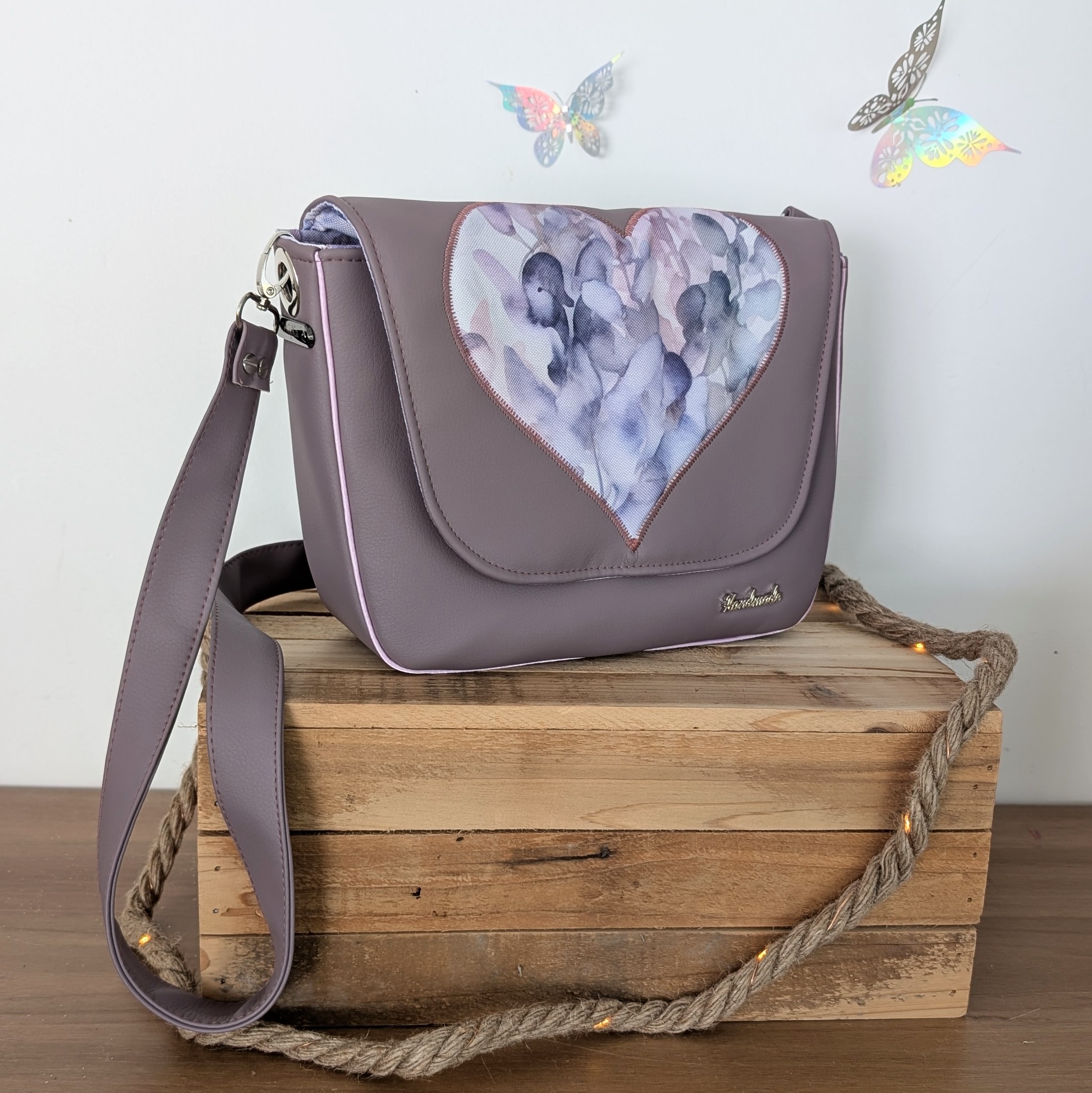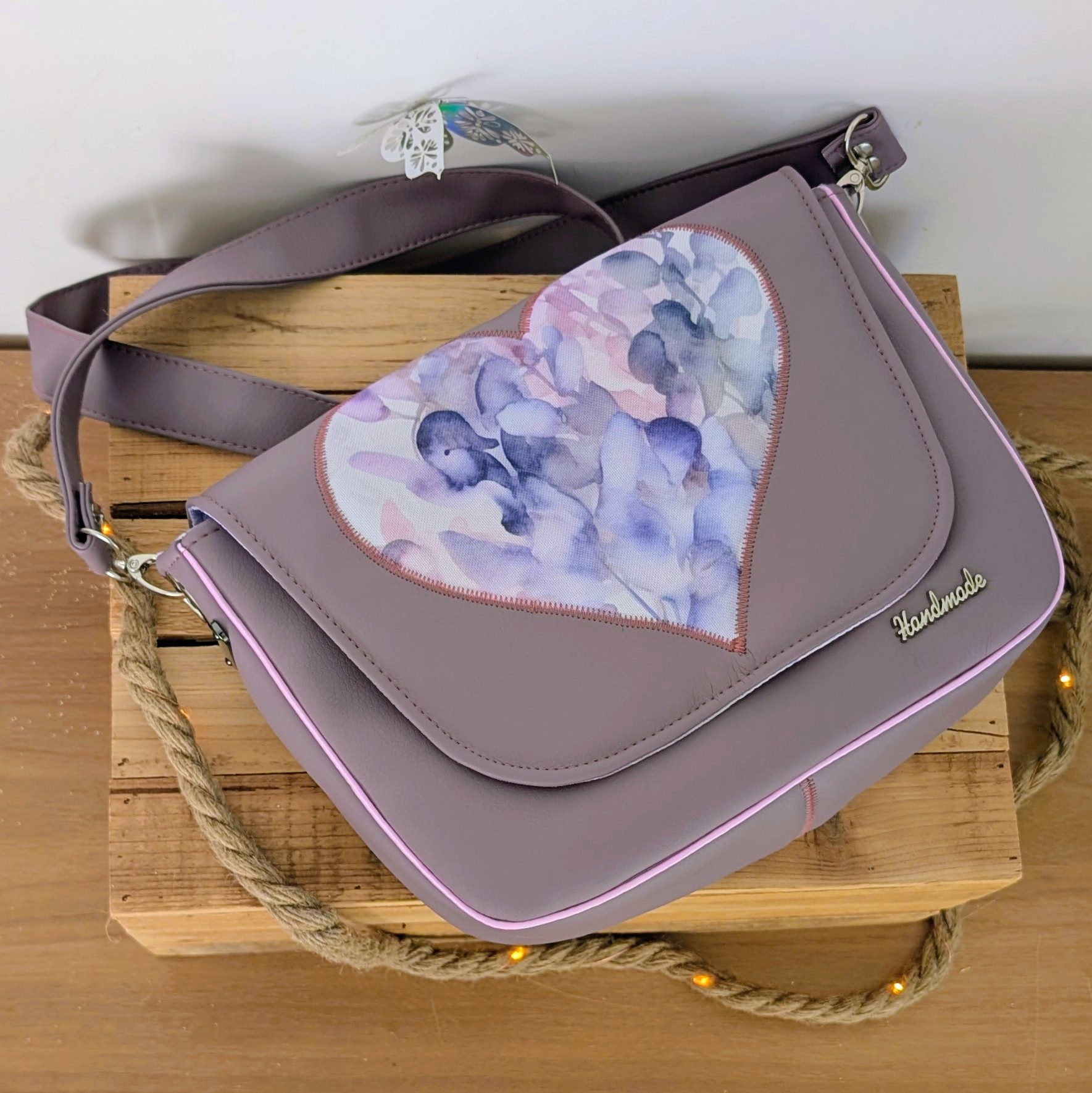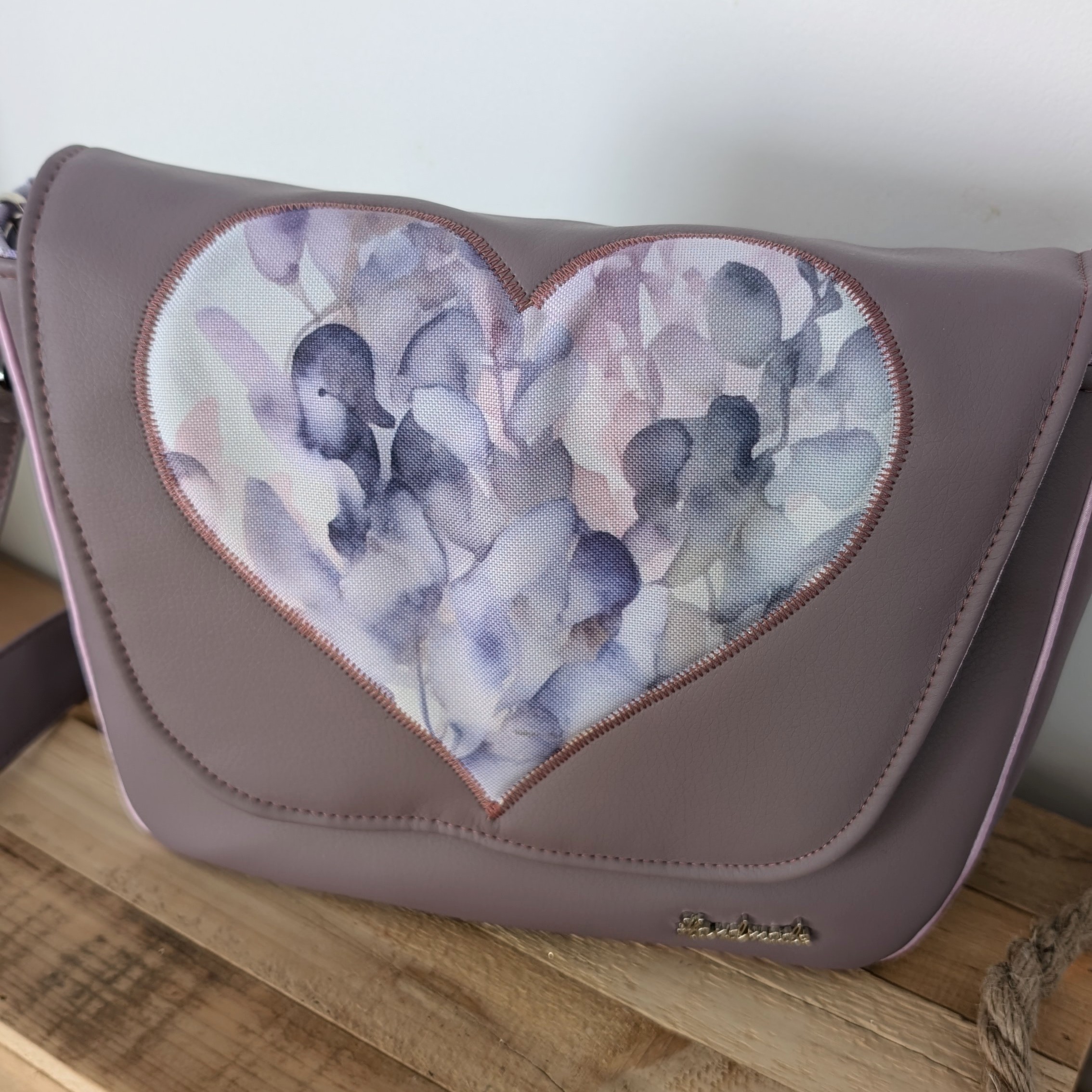 Sac à main Collection « Margaux »- Mauve cœur fleuri