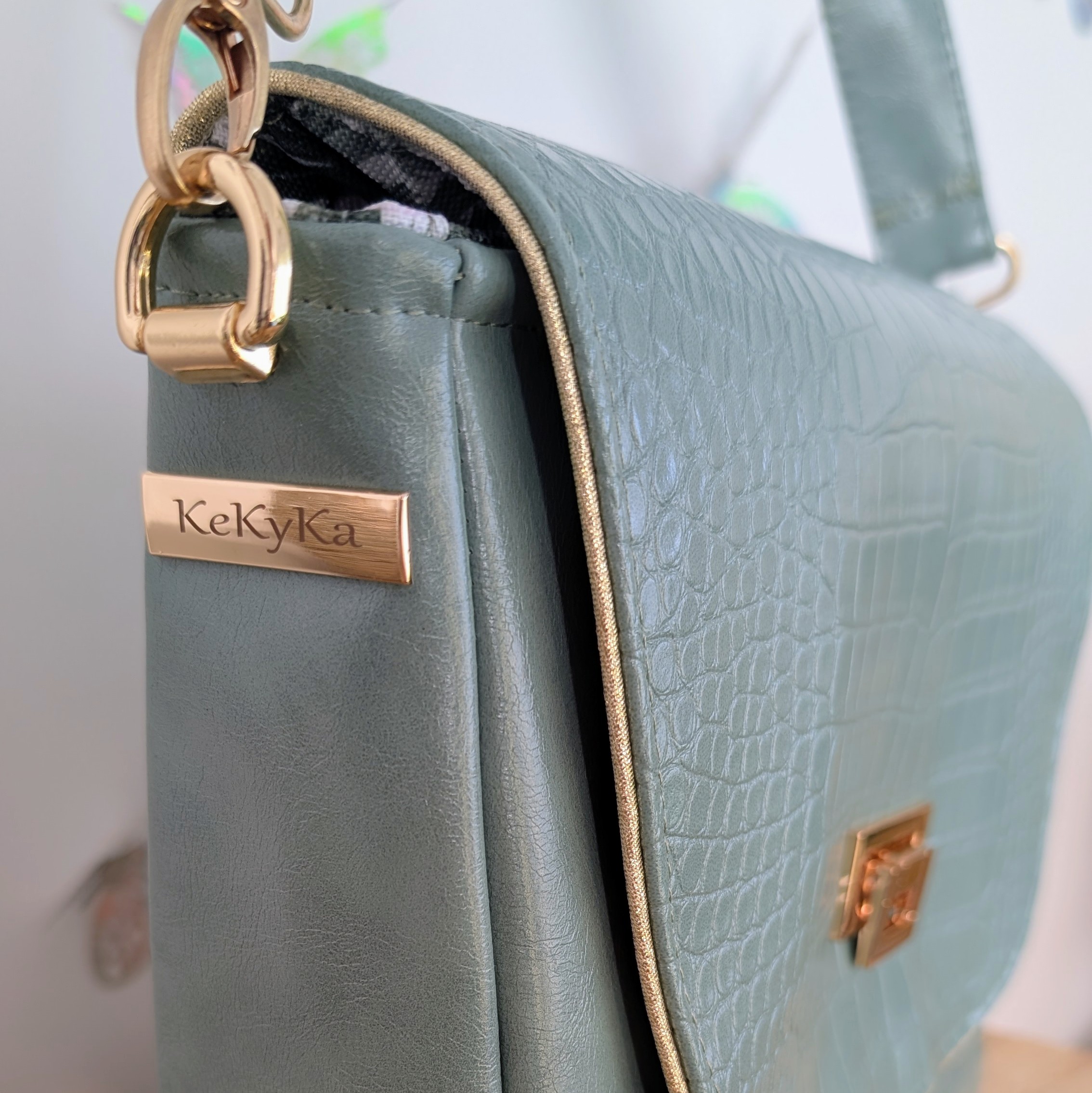 - ✦Simili cuir vert céladon — toucher souple, reflet légèrement nacré, apaisant et irrésistible à la fois