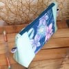 - ✦Panneau central tissu fleurs botaniques nocturnes — clématites lilas et roses, chardons lumineux aux filaments irisés, feuilles graphiques sur fond bleu nuit profond